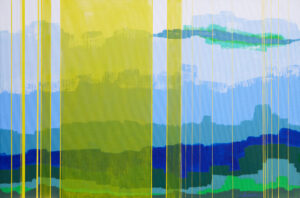 Zweierlei kommt nun zusammen: zunächst die Arbeit des Konstruktivistischen Künstlers. Ickrath arbeitet hier mit Modulen. Seine Bildfläche ist je 90 x 30 cm groß – hier ist schon das Metrum „3“ zu erkennen. Die Bildfläche ist virtuell in Quadrate mit einer Kantenlänge von je 3,333 cm geteilt. Das ergibt 9 Quadrate in der Breite und 3 x 9 Quadrate in der Länge/Höhe, d. h. insgesamt 243 (das sind 3 hoch 5) Quadrate – weitere Bezüge, die sich in diesem System ergeben, müssen hier außer Acht gelassen werden. Die 243 Quadrate, die eine virtuell geschlossene Fläche bilden, reduziert der Künstler so weit, dass nur noch eine geringe Zahl von Quadraten übrig bleibt und sichtbar wird, eine geschlossene Struktur oder eine Reihe von Einzelquadraten bildet – diese Festlegung ist der finale künstlerische Akt. Damit ist nun die – sagen wir – technische Seite der Vorgehensweise von Joachim Ickrath beschrieben.