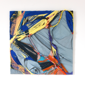 In ihren abstrakten Materialgemälden und Skulpturen verwendet die Künstlerin Alltagsgegenstände wie Kleidungsstücke, Stoffreste, kaputte Fußbälle, Garten- und Fahrradschläuche und Verpackungsmaterialien wieder. Sie recycelt sie auf ganz überraschende und ausgeklügelte Weise. Aus ihrem vertrauten Kontext befreit und in ein Kunstwerk integriert, verlieren die gefundenen Objekte nicht nur ihre ursprüngliche Funktion, sondern können auch nicht mehr klar definiert werden.